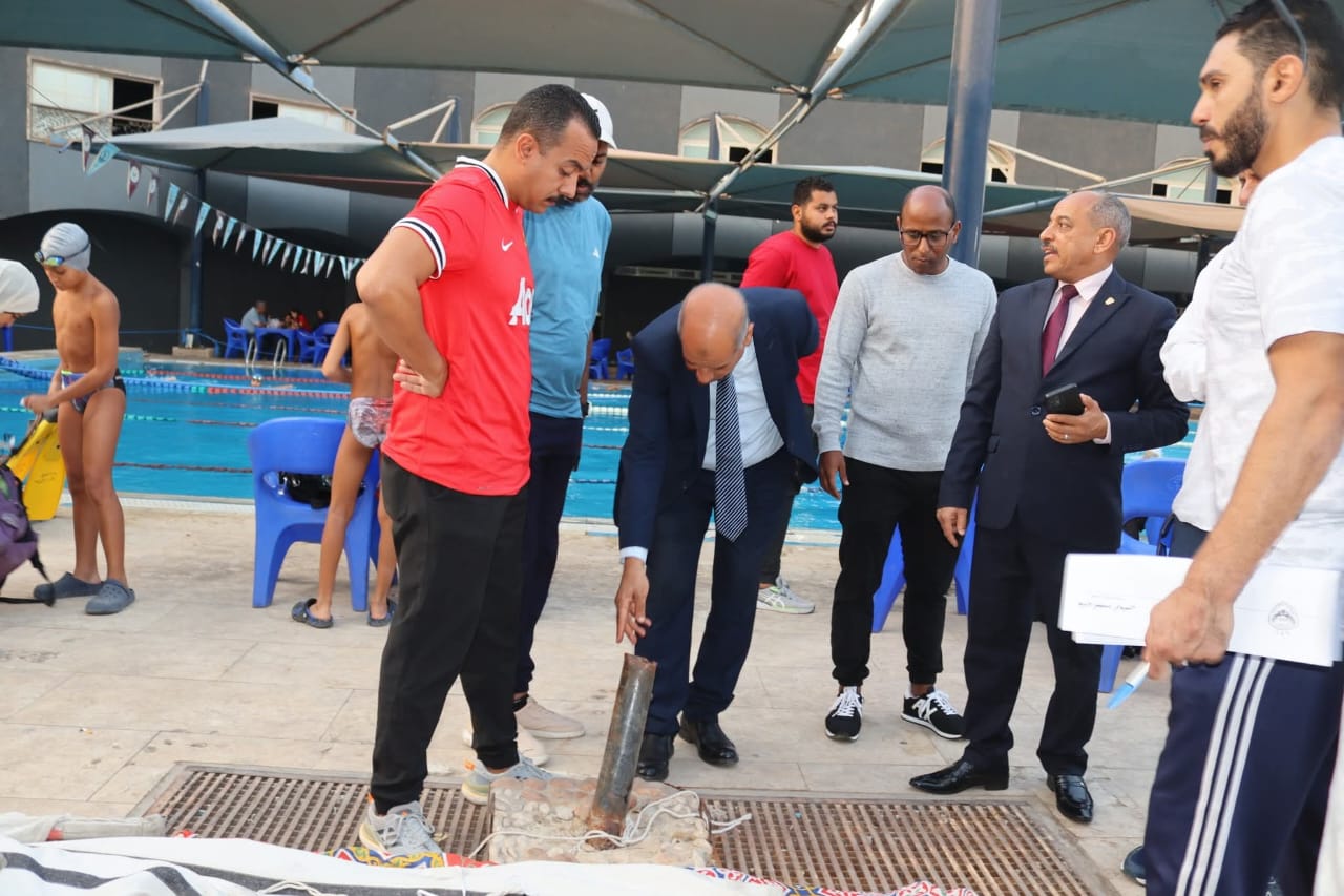 م .رأفت زكي رئيس لجنة إدارة نادي النصر يقوم بجولة علي حمام السباحة والملاعب