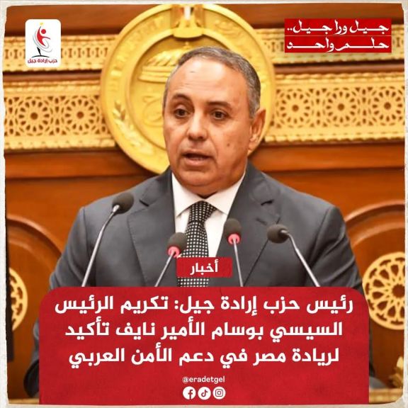رئيس حزب إرادة جيل: تكريم الرئيس السيسي بوسام الأمير نايف تأكيد لريادة مصر في دعم الأمن العربي